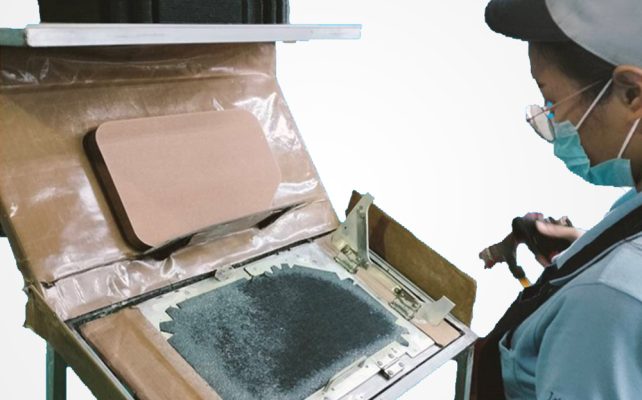 Heat the base material with a heater and press mold it with a mold. We can handle from thin nonwoven fabric to thick nonwoven fabric.